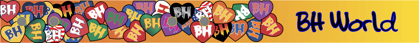 BH World Orange to Yellow Fade Bag Tag With Multiple BH World Heart Logos. Our standard size measures 13.5" x 1.5" when snapped.