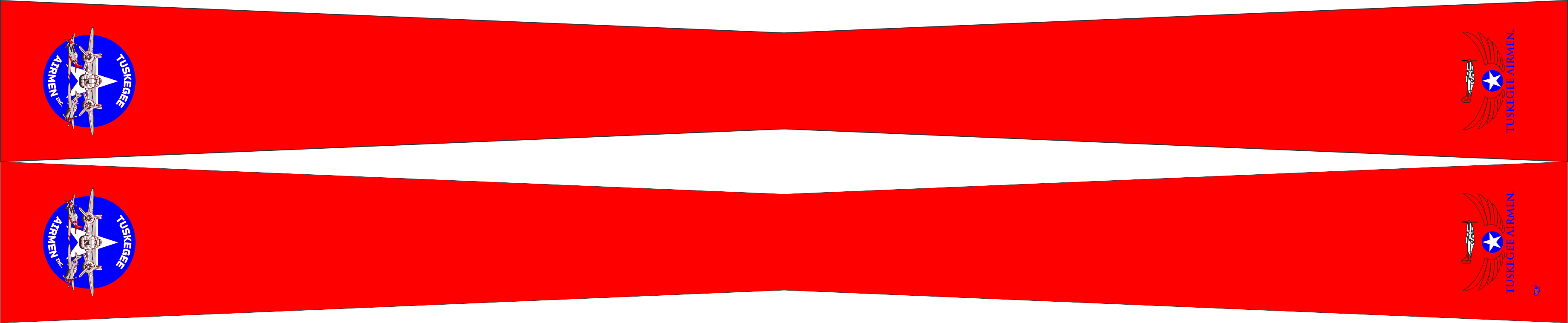 Tuskegee Airmen Red Flight Scarf with Tuskegee Airmen Logos on all ends. Size: 4" x 2" x 4" x 48".