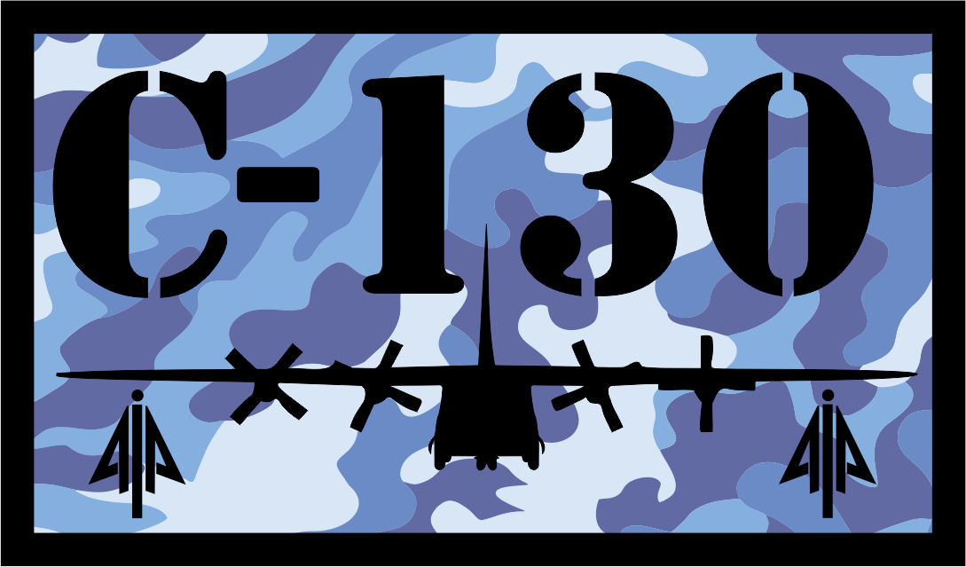 Aero Instruments & Avionics - Camo Background Black Border, C-130 Text & Aircraft 3.5" Patch
