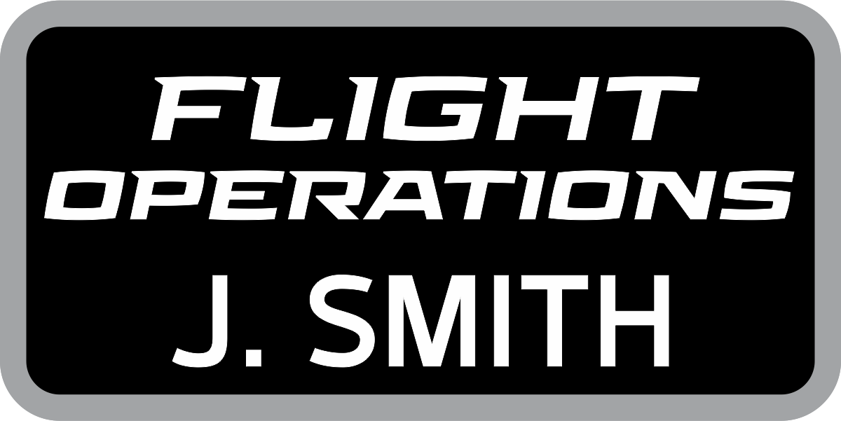 CSI Aviation Inc - Flight Operations Name Tag- Black Background Gray Border, White Text, with Leather Backing