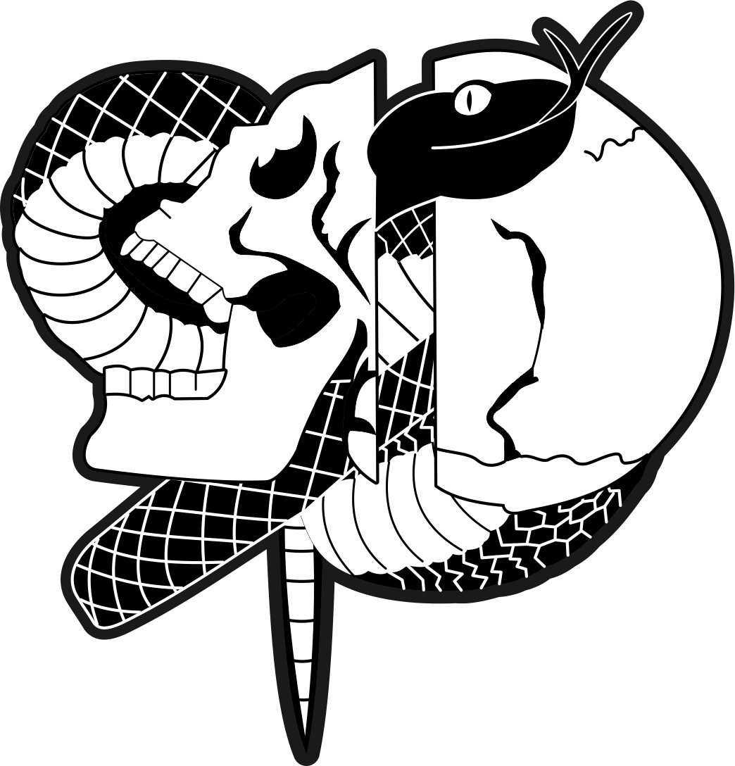 John Evalle - Black and White Skull with Snake 3.5" Patch -- Not For Collectors