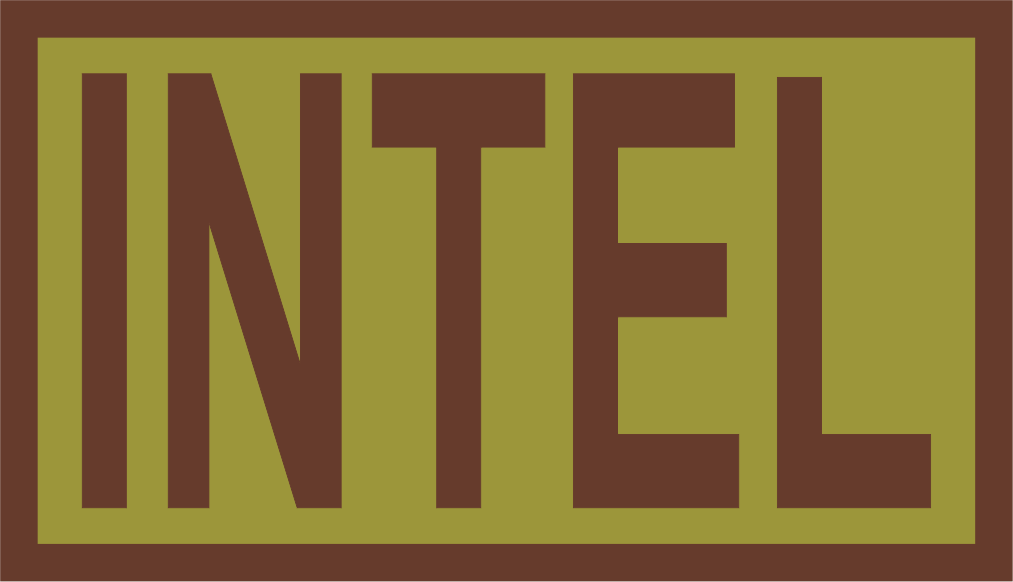 Duty Job Patch - Bagby Green Background, Spice Brown Border and Text, INTEL, 3.25" with velcro