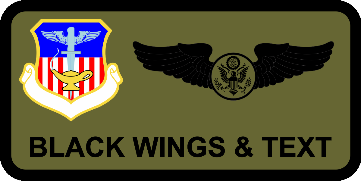 Hurlburt Field 1st SOG Name Tag- OD Green Background, Black Border, Black Wings, and Text, Full-Color Logo on the Left Side of the Tag
