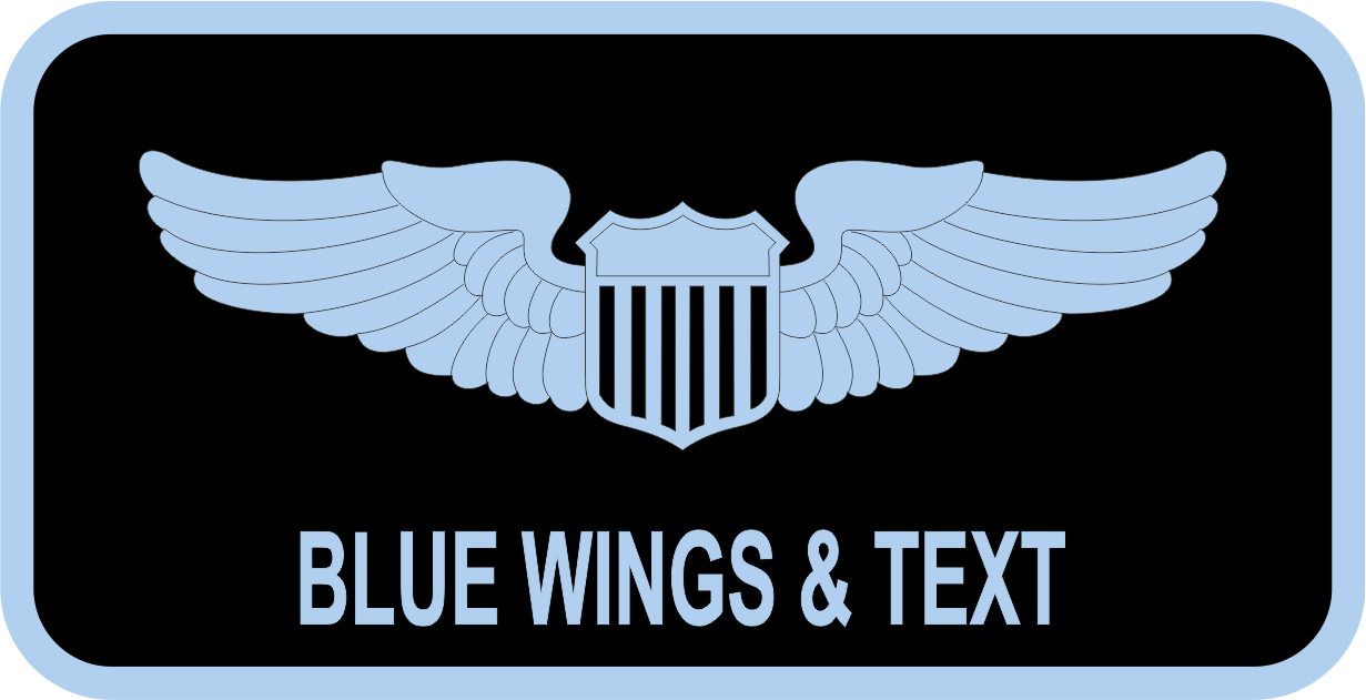 Dover 326 AS Blacked-Out Inverted Name Tag-  Black Background, Brittany Blue Border, Wings & Text - Leather backing optional