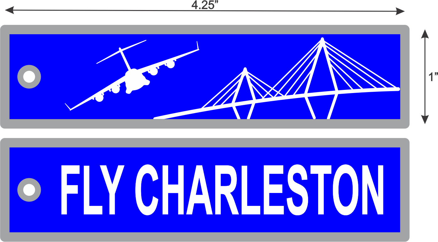 Charleston AFB 315 AES Key Chain 4.25" x 1" FLY CHARLESTON - White Text, C-17 & Bridge, Gray Border