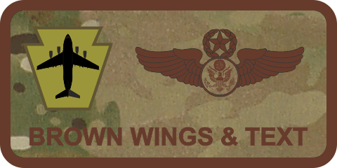 Pittsburgh IAP ARS 758 AS C-17 OCP Name Tag Option 1 - OCP Background, OCP Twill Background with Spice Brown Border, Name & Wings with the C-17 Keystone logo to the left - With Leather Backing