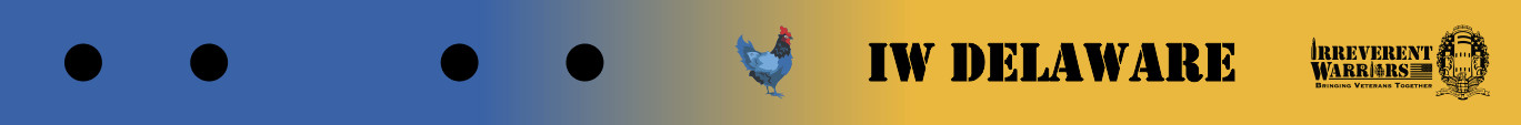Irreverent Warriors Delaware Bag Tag. Blue and Yellow Fade With Blue Hen Emblem on the Left of Text and Irreverent Logo on the Far Right. Size Measures 13.25" x 1" When Snapped.