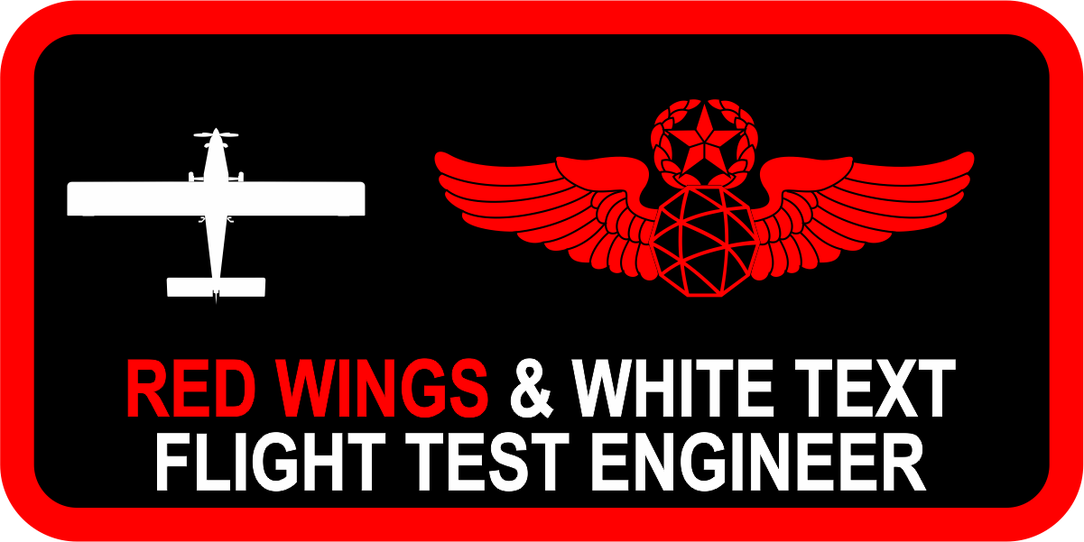 L3HARRIS Technologies Name Tag - Black Background, Red Border, Red Flight Test Engineer Wings, White OA-1K Skyraider II, White Text