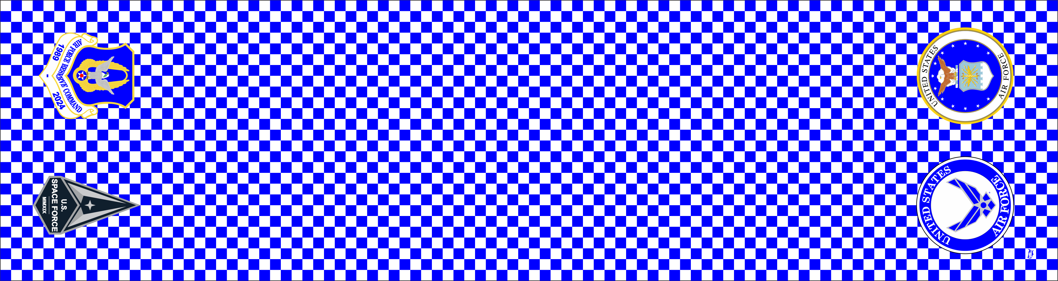 White And Blue Checkered Background With Space Force, AFRC, And USAF Emblems On The Ends Of The Scarf. Size: 6" x 48".